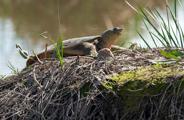 Fırat kaplumbağası (Rafetus euphraticus), Mezopotamya bölgesine özgü, yumuşak kabuklu bir tatlı su kaplumbağasıdır. Bu tür, Türkiye’nin Güneydoğu Anadolu Bölgesi’nde, Fırat ve Dicle nehirlerinin havzasında yaşar. Aynı zamanda Irak, İran ve Suriye’de de yayılış gösterir. Bu yönüyle Bereketli Hilal olarak da isimlendirilen bölgenin karakteristik bir canlısıdır. Yerel halk tarafından “Sini Bağa” ya da “Sac Bağa” olarak adlandırılan bu tür, Türkiye’de yaşayan beş tatlı su kaplumbağası türü arasında en az tanınanı ancak soyu en çok tehlike altında olanıdır.