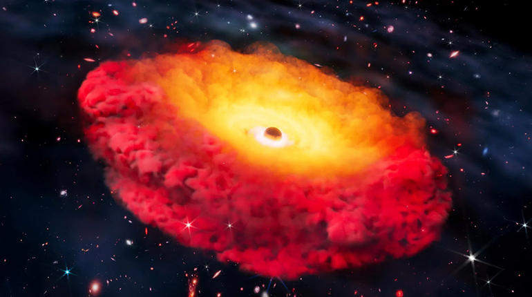 James Webb Uzay Teleksobu (JWST) ile gözlemler yapan bir grup araştırmacı, oluşum zamanı bakımından, evrenin bilinen en eski kara deliğini keşfetti. Büyük Patlama’dan sadece 500 milyon yıl sonra var olduğu tespit edilen kara deliğin kütlesi Güneş’inkinin 300 milyon katı kadar. Süper kütleli kara delik, evrenin erken zamanlarında var olmuş “ufak kırmızı nokta” türü bir gök adanın merkezinde yer alıyor.