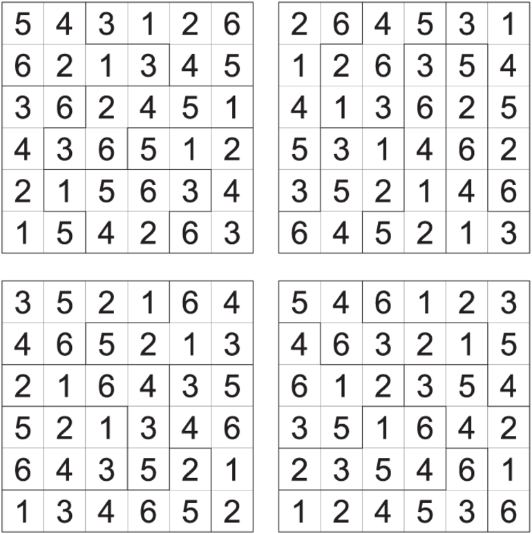 Bilim ve Teknik dergisi Düşünme Kulesi köşesinde Eylül 2025 sayısında yayımlanan Bölgesel At Hamlesiz Sudoku sorularının çözümleri: