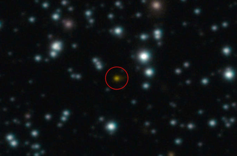 Fotoğrafta turuncu rengi bir nokta olarak görülen gama ışını parlamasına bir yıldızın içine düşen bir kara deliğin yol açtığı öne sürülüyor.