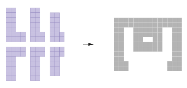 Altı “L” parçasını bir araya getirerek yukarıdaki şekli elde ediniz. Parçalar döndürülebilir ve ters çevrilebilir.