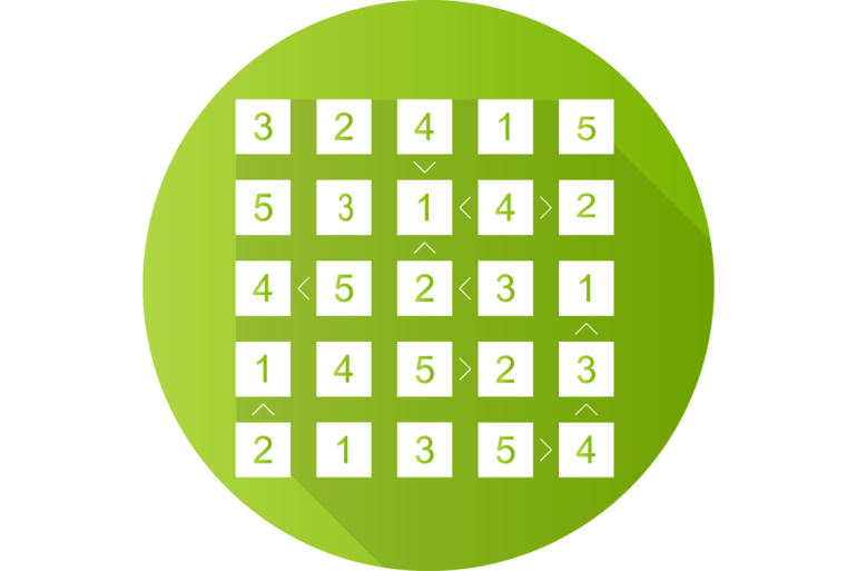 Her satırda ve sütunda 1’den 5’e (örnek için 1’den 4’e) kadar rakamlar tam olarak bir kez yer alacak şekilde diyagramı doldurun.