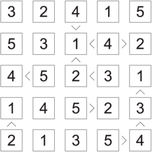 Hücrelerdeki rakamlar arasındaki ilişki büyüktür (>) ve küçüktür (<) işaretleri ile belirtilmiştir.